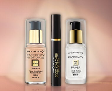 Mit Max Factors Foundation, Bronzer, Rouge, Puder und Concealer ganz einfach ein makellose Aussehen herzaubern.