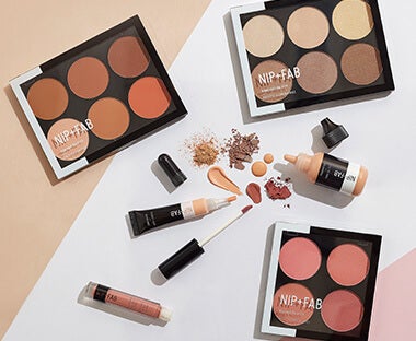NIP + FAB Make-Up kreiert einen makellosen, konturierten Teint mit Foundationtönen, die individuell anpassbar sind, 6 definierenden Konturtönen und Highlighterpaletten.