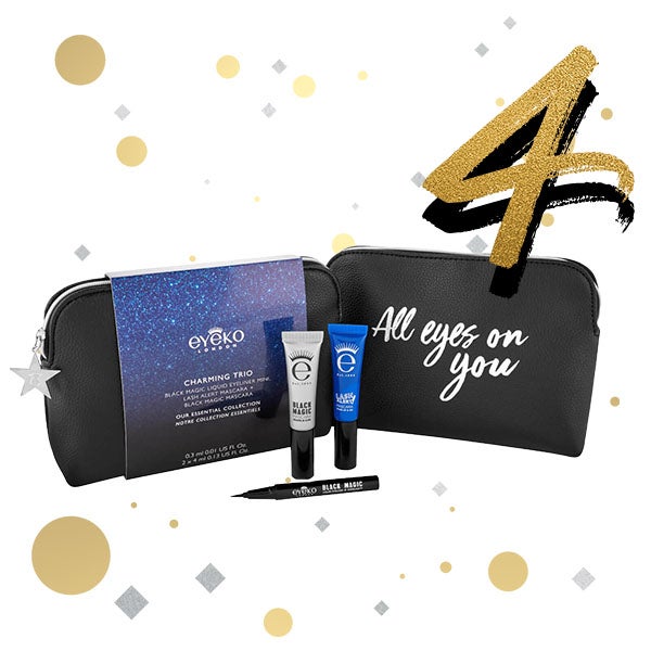 Kreiere dieses Weihnachten einen augenöffnenden Look mit dieser niedlichen Schminktasche mit zwei Mascaras und einem flüssigen Eyeliner mit kalligraphisch inspirierter Spitze.