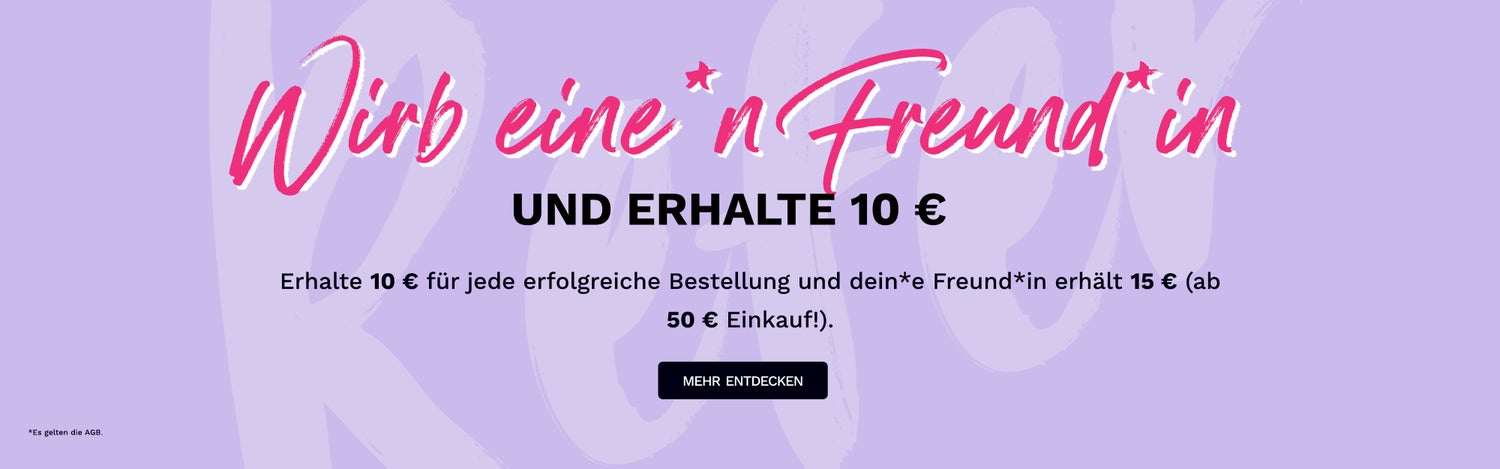 Bekomme 10 € Guthaben! Dein(e) Freund(in) wird 15 € Rabatt auf seine/ihre erste Bestellung ab 50 € Einkauf erhalten